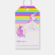 Märkre för duschkort för babyduschmunkar i stollig, visning konst. Söt hand målade enkornigheten med rainbografiskt, randigt duschkort för babydusch med visning. Perfekt för dig att be dina gäster om visning av gåva som inte är inslagen och dekorerad med band och märkt med detta kort. Anpassa till din egen mor för att vara namn och gästerna kan använda kortets framsida som en märkre för babyduschgåva. Den ursprungliga, vita, söta rosan bestod av en enkornig, mytisk, vattenfärgad målning och grafisk design av Sarah Trett för www.mylittleeden.com på zazzle.