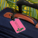 Grönt golfer som bär en plaid väst och väska som hänvisar till hans golf-klubbar och bagage.Du kan ändra bild och text till spelar ingen roll du vill.