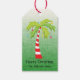 Anpassa dina helgdag med de här märkrna med anpassningsbar. Den har en övertoningsbakgrund för grönten med en handflatan träd som är jul med färgstarka hängande ornament. Lägg till ett namn och anpassa teckensnittet stil, färg eller storlekt.