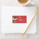 Märkrn med julklapp är dekorerad med vit frostning och en hollblomma med snöflingsprej. Tillverkad på Avery-adressetikett.