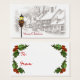 Vintage-julscenen på en gammal stad vid julhelgen på de här märkrna. Det är för det mesta en svartvit bild där det enda färg är på gatulampan och Juldekorationer.