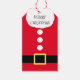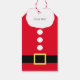 Santa kostym röd. En underbar märkre för en julklapp i de bästa klassiska traditionerna. Du kan redigera texten på baksidan av märkrn.