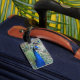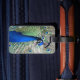 Den härliga påfågelfågeln är på denna bagagemärkre.