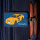 Märkre för personligpojkebagage - gul Racer Bagagebricka