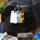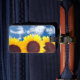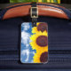 Denna härliga bagagemärkre visar en gräns av solrosor mot en solig blåttsommarhimmel.