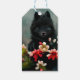 . Svartvit blommigt med svart hund, valp med svart hund bland den söta underbara presentsäcken för alla närvarande