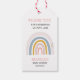 Märkre för babyduschgåva med spjutspets för matrumsligt regnbåge med hand plockade som illustration av en pastellregnbåge med stjärnor. I texten står det: "Tack för att du duschar oss med kärlek." Den här rosan är perfekt för en flickdusch.