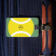 Märkre för tennistemabagage. Gula gåvor för tennisbollfödelsedag för tennisspelarear, lagledare och fläktar. Tillfoga din egna textnågot liknande en rolig slogan, citera, skoja, ordstävet eller namn. Beställnings- bagageetiketter för reser hänger lös och resväskor.