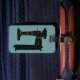 Håll din information behändig på din maskin för att resa klassificerar eller tillverkar shows. Presenterar en vintagesymaskin som är grafisk på en sida och en pincushion, och rum för information om kontakten på baksidaen. Original- konst av Rebecca av nattuggla Menagerie. 2012.