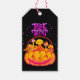 Det är halloween fest som firar det kommande Halloween. Denna handdragna kawaii- och roligt-illustration har happy halloween, pumpsvampar och bus eller godis.
