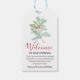 Välkomna ut ur stadsgästerna med vintern bröllopet och välkomna tack till märkrna. De har min ursprungliga vattenfärg Julgrej och bär i gröntens och rörets nyans. Ord Välkommen anges i ett trendig-handskrivet skript. Perfekt för helgdag temat bröllop. Väljstaggen går tillbaka till ett fast bärodtt färg. Om du vill se fler vattenfärgsförmånstaggar eller hela matchande bröllop-sviten går du till www.zazzle.com/dotellabelle