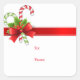 Kvadratisk dekal visas med en vit färg-bakgrund med candy cane-hollutskrift och texten Till: & Från: på dekalen för presentmottagaren. Anpassa eller köp som det är. Lagrar Image all-free-download.com