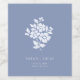 Chic med ungdomlig elegans. Denna dammiga blå och vita bröllop vin-etikett avslöjar en ny, modern och ungdomlig ton. Utformningen har en fin vit blommigt bouquet, ett par namn, ställe och datum, mot en dammig blå bakgrund.