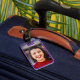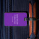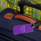 Ditt fotoresresresetagg med lila violett rundad gräns och kontaktuppgifter för personlig på baksidan. Se till att väskan eller fodral står ut och att de lätt kan hittas efter ankomsten.