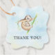 En sluttningstagg för spädbarnsduschen med mamma & baby på en blå vattenfärgsbakgrund.