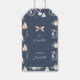 Lägg till en festlig beröring till presenter med den här elegant julklappens märkre. Med en marin bakgrund med vattenfärgstearinljus, presenter, stjärnor och en gyllene båge är det perfekten för märkning av helgdag presenter. Med "Till/från"-designen blir det enkelt att packa in och snyggten till jul-firande.