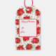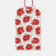 Den här presentens märkre visas med ett provocerande helgdag poinsettia-utskrift. Anpassa det här objektet eller köp som det är. Skriv ut Lagrar-bild freepik.com