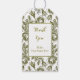 En anpassningsbar tackar dig eller presenten märkre med skript brev på ett elegant antikt blommönster av vintage etsad ro i vita och faux golder.