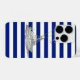 En silver-krom som en fiskebåt på en marin blå rand-deka. En modern nautisk gåva.