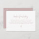 Bokar för baby-kortet har en handskriven bohemisk roligt och modern minimalistisk utformning med en dammig kombination av ro rosa och vit färg. Ändra enkelt *de flesta* ordalydelserna så att de uppfyller behoven för evenemanget och ändra färg så att de bättre stämmer överens med evenemanget. Det här med ett bok-kort är perfekten för ditt moderna baby-evenemang.