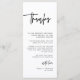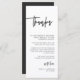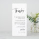 Tack vare det här bord-kortet har du ett modernt handskrivet teckensnitt och en ren minimalistisk layout. Den enkla kombinationen svart och vitt färg gör det till ett tillägg till perfekten i alla händelser. Använda den här menyn för din bröllopsmottagning, möhippa, pension party etc. Redigera *de flesta formuleringar för att uppfylla dina behov.