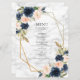 Den här vackra menydesignen i bröllop, modern och trendig, har en ytlig guld-geometri som är förskönad med vacker marin blå och rosa, ro, knoppar och eukalyptus grey. En del av en matchande bröllop-uppsättning, visa fullt-samling här: https://www.zazzle.com/collections/navy_blue_blush_marble_geometric_floral-119975267832105081 Tack så mycket för att du stöder vårt småföretag, vi uppskattar det verkligen! Vi är så lycklig att ni kärlek denna utformning är lika mycket som vi, och skulle vilja att ni, kärlek till inbjudan, deltog i vår nya privata Facebook-grupp, Bröllop Planning Tips for Busy Brides. Gå med att ta emot de senaste nyheterna om försäljning, nya versioner och mycket mer! https://www.facebook.com/groups/622298402544171 Copyright Anastasia Surridge for Elegant Inbjudan, alla höger reserverade.