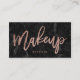 En elegant modern stilfull visitkort för makeupkonstnär med elegant skrivar bokstäverstiltypografi i faux som rosa guld omkullkastar på en bakgrund för trendig- och elegantsvartmarmor.