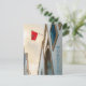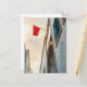 Denna eleganta vykort visar den livfulla röda flaggan i Marocko som vajar stolt mot en bakgrund av traditionell vit tvättad arkitektur. En mjuk blå vertikal "MAROCKO"-typografi kompletterar det intrikata blå gallerfönstret. Det är den perfekta souveniren för resenärer och älskare av marockansk kultur och landskapsfotografi.