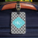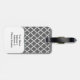Show som du utformar med ett enkelt, gulligt, modernt, och moderiktig marockansk quatrefoil, galler eller klöver formar mönsterdesign reser för bagage initialer för märkre, som är den beställnings- monogramen med ditt första, mittet- och efternamni en preppy stilsort på ett sida och namn, telefonnummer, adress på andra sidan. Klicka "skräddarsy den" knäppas för att personifiera din gåva, genom att tillfoga din egna initialer. Välj dina egna stilsort och färger, för att göra det ditt eget. Denna ska snyggt- och trendigbagagetage gör en underbar gåva för dig, eller någon som du älskar. Perfekten för jul, födelsedagar eller några orsakar. Mörk - grått och vit färgar bakgrund med en brytningkricka Quatrefoil och initial vit.