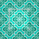 Blandad digital återgivning av ett klassiskt marockanskt platttyg från mönster - Aqua och djupt teal, accentuerad med vitt, på turkos-/påsbakgrunden
