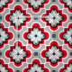 Belägger med tegel digital återgivande för blandat massmedia av en marockansk klassiker mönstertyg - djupt kinesiskt rött, svartvitt på medelgrå färg/en grå bakgrund