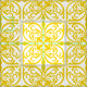 Marockanskt inspirerat belägger med tegel mönstertyg - som är senapsgult med en vitbakgrund