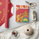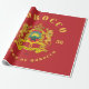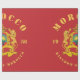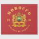 Den marockanska jackat av arm är centrerad mellan två textavsnitt. Den översta delen är land namn som är världsberömt, och den andra delen av texten är officiellen namn i land. Självständighetsåret är utmärkat över formgivningens mitten, och under emblemet är det en liten nationell flagga.