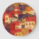Vattenfärgning av byn Ait Benhaddou i Marocko. Varm färg och utmärkande arkitekturfunktion. Originalkonst av Nic Squirrell.