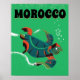 Marocko vintage resor poster. En marockansk resekonst med en söt havssköldpadda i vintage stil.