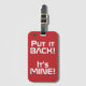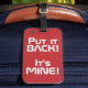 Marockos nationella Flagga Lungny Patriotic Luggage Tag med marockanskt färg som täcker märkrns framsida. Lustigt text "Sätt tillbaka den!" Det är MINE" är skrivet över flagga färg. Anpassadet Text är fullt ut med funktionen "Anpassa den!". Andra sidan av märkrn är reserverad för din information. Den här roligten är Marockos resväska och perfektens följeslagare till alla tillfälle. © LänderAvVärlden