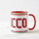 Marockos Flagga Patriotic Coffee Mugg med den härliga texten "Marocko", som insprutas med mönster och färg från det nationella flagga. Utformningen avslutas med de två dubblorna tunt linjer när det gäller att komplettera färg överst och grund vid kopp. Färg i kopp och i kopp-handtaget är helt balanserat med resten av färger. Här är den fantastiska följeslagaren för kopp i kaffet. Charmdesign, underbar färg och det unika utseendet gör det till en perfekt för vilken tillfälle som helst. © 20210000000000000