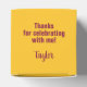GRAD i fet markeringsmarkering radbryts runt framsidan av de här gult guld 2-tums fyrkantiga studentfesterna med ditt namn och tack för ditt meddelande längst upp. Fyll med behandlingar som ett tack till gästerna vid din studentfest. MATCHING-objekt och mer färg i vår samling.