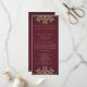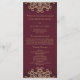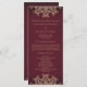 Ett vackert maronburgandabbordeaux- och guld bröllop-ceremoniprogram med en exotisk indisk inspirerad till prydnadssari MEDALLION mönster MED EN BLOMMIGT OCH LOTUS SUNBURST DESIGN. Denna elegant och det vackra moderna indiska stil-bröllopsprogrammet är perfekt för varje formellt tillfälle MED ETT ÖSTER-ASIAN-INDONESIAN-MOROCCAN ALADDIN- ELLER ARABIAN NIGHTS-TEMA. Designad av Chrissy H. Studios, LLC. Alla Höger reserverade.