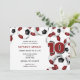 Den här fotbolls-temainbjudan innehåller kluster av maronkulor, svartvita fotbollar på högerna och överst kant på framsidan och ett enda kluster som täcker baksidan av inbjudan - anpassa informationen om party på vit bakgrund - av katz_d_zynes