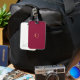 Bagagetaggen med en solid maron (# 8A1538) med vit Q brev.Den hänvisar till Qatai-flagga colos.Modern och minimalistisk design av Alma Wad.Lägg till ditt monogram för att göra det unikt för dig.
