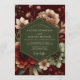 Embrace a dramatic and romantic atmosphere with this moody botanical design. A rich maroon backdrop sets the stage for a lush arrangement of painterly blooms in shades of cream, blush, and deep red. Complemented by sage and forest green foliage, this opulent floral composition evokes a timeless, baroque elegance for your special day.