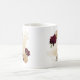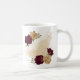 Vacker kaffemugg med maroon och beige gula blommor med gröna blad .