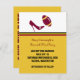 Färgglad fotboll bröllop Save the Date-kort gjort i vinrött, gyllengult, svart och vitt. Grafik med en vinröd stiletthög klack som sparkar en vinröd och gul fotboll, pryder den övre vita delen av kortet. Den nedre delen av kortet är gjort i gyllengult med en svart, gul och röd rand nära toppen, och anpassad svart och vinröd text redo att anpassas med din bröllopsinformation. En gul baksida har vinröd text som löper i sidled och lyder Save The Date. Bra Save The Date-kort för det fotbollsfansaktiga paret.