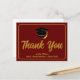 Detta moderna maroon och guld anpassade examens tack-kort har klassisk handskriven tack ovanför din gymnasie- eller högskolenamn för klassen 2023. Anpassa med ditt namn under den svarta examenshatten för personliga tack-kort till examen.