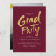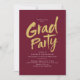 Maroon Guld Simple Modern Push Script Grad Party Inbjudningar