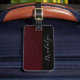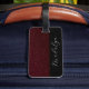 Maroon Leather Struktur Script Calligraphy Namn Bagagebricka