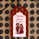 Maroon och guld söt indisk möhippa-par presentetikett