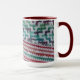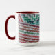Färgfyllda färg-beskurna mönster i ljusblått, grönt, maron, vitt och rosa skuggor figurerar runt dessa muggar. Det ursprungliga virvelnålarbetet var handgjort med kärlek. Dessa vackra mugg har känslan av mysigt varm komfort som alla är inlindade i kärlek och gör underbara gåvor. Bilden är originalfotografi av JLW_PHOTOGRAPHY