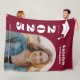 Modern maronburgundi Photo Studenten keepsakta med gradens foto inuti formen av en båge, med klass för år och din student namn med en studentmössa. En mysigt komfy-filt ger en underbar grad-gåva till student, student eller graderingor i högskolan.